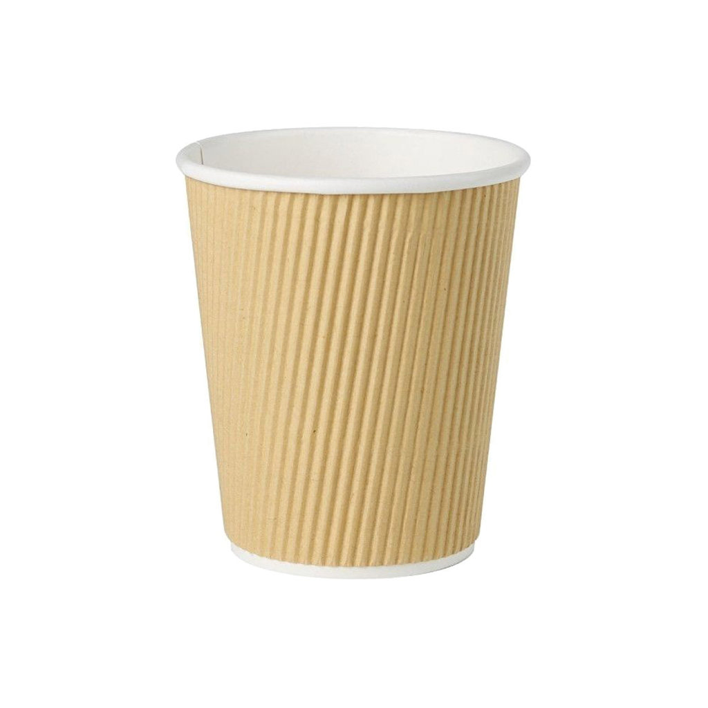 Der umweltfreundliche take-away Riffelbecher für den to-go Bereich ist von -40°C bis 100°C geeignet. Die Riffelwand sorgt dafür, dass die Becher, auch wenn sie mit heißen Getränken gefüllt werden, wie dreiwandige Becher und Becher mit Isolierung, angenehm in der Hand liegen.