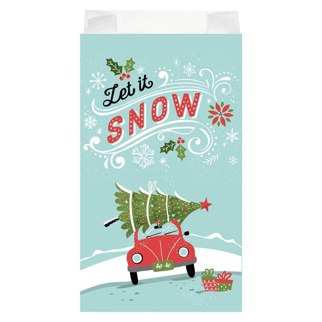 Geben Sie Ihren Leckereien einen besonderen Akzent mit unserem Faltenbeutel im festlichen Muster! Der elegante Schriftzug „Let it Snow“ vervollständigt das ansprechende Design und schafft eine gemütliche, festliche Atmosphäre. Ideal für Gebäck, Geschenke oder andere Köstlichkeiten – perfekt für die besinnliche Jahreszeit!