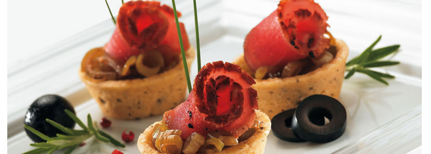 Tartelettes sind DAS Fingerfood für besondere Anlässe. Die edlen Häppchen lassen sich gut vorbereiten und bleiben selbst nach dem Einfrieren und Wiederauftauen knusprig und stabil. Durch Rosmarin und Oliven im Teig sind diese Tartelettes eine Bereicherung für herzhafte Füllungen. Nutzen Sie die schmackhaften Mürbteigschälchen nach Belieben für frische Kreationen. Dieses Rezept mit feinem Thunfisch und orientalischen Gewürzen zum Beispiel ist etwas ganz besonderes und wertet jedes Buffet auf.